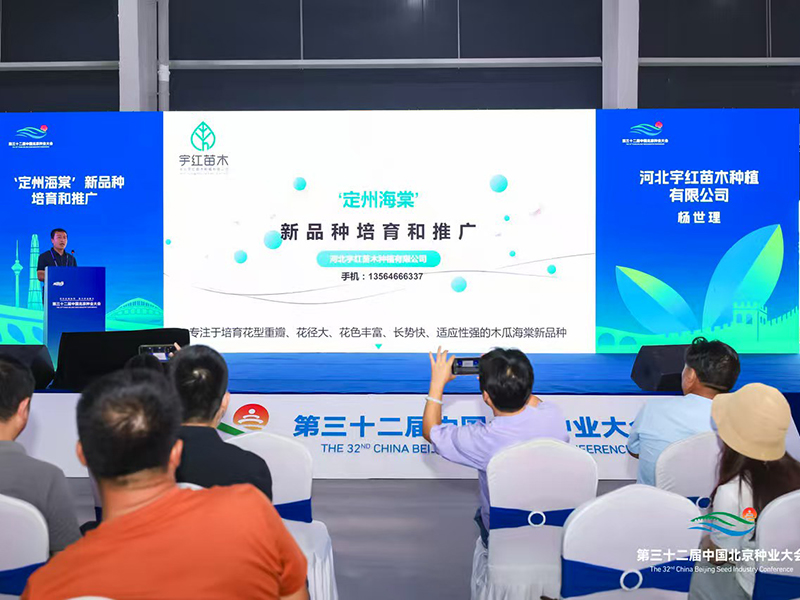 展望:深耕种业,服务生态河北宇红苗木总经理在大会期间表示:“参加北京种业大会并成功发布新品,是对我们研发能力的肯定,更是一个新的起点。未来,我们将继续加大科研投入,深化与科研院所的合作,持续优化和推出更多优质的定州海棠乃至其他特色苗木新品种。同时,公司将建立完善的种苗供应体系、技术支持和售后服务网络,确保新品种能顺利落地应用,真正服务于园林绿化升级和生态文明建设,为‘美丽中国’贡献我们的‘宇红力量’。”