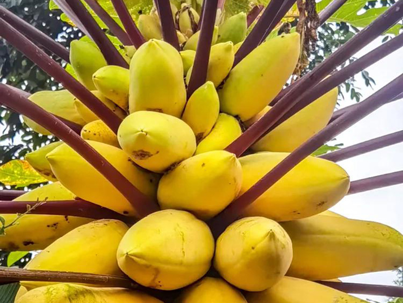 番木瓜则是 “南美移民”,喜欢温暖湿润的环境,在我国福建、台湾、广东、云南等南方省区扎根,茎干里带着乳汁,树形更显柔软。它的果实是典型的热带水果,未成熟时能腌制成菜,成熟后甜润多汁,还能加工成果酱、果脯。更特别的是,番木瓜树有雄株、雌株和两性株之分,结果能力因 “性别” 而异。